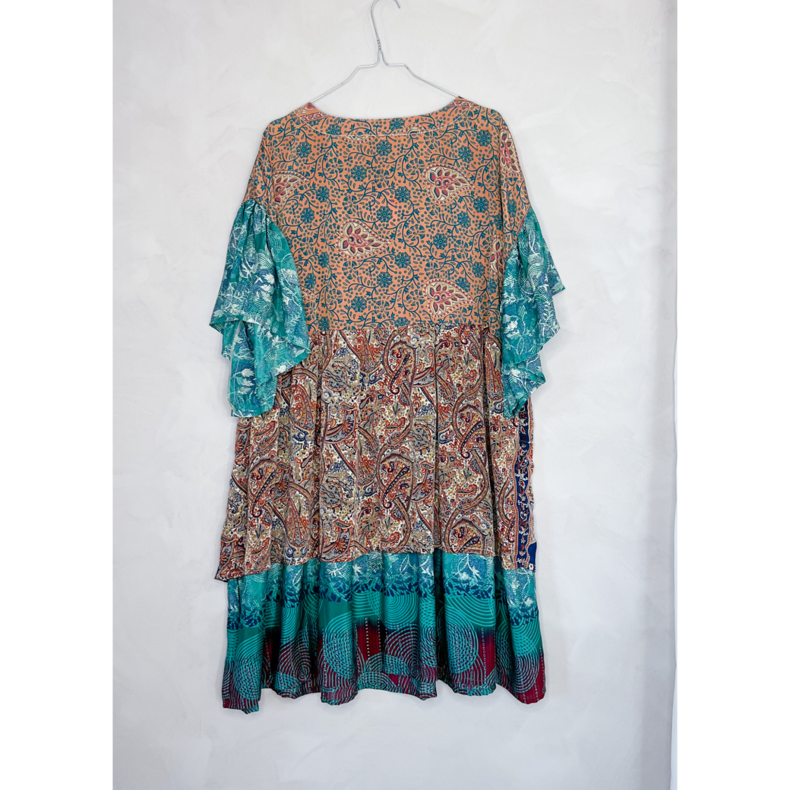 ONE SIZE - Skøn unika kjole - der er kun een af hver! BEMÆRK at kjolerne er produceret i vintage sarier, så der kan være små fejl i materialet, som feks. mindre pletter, små trådfejl, små huller, lapper og print fejl.