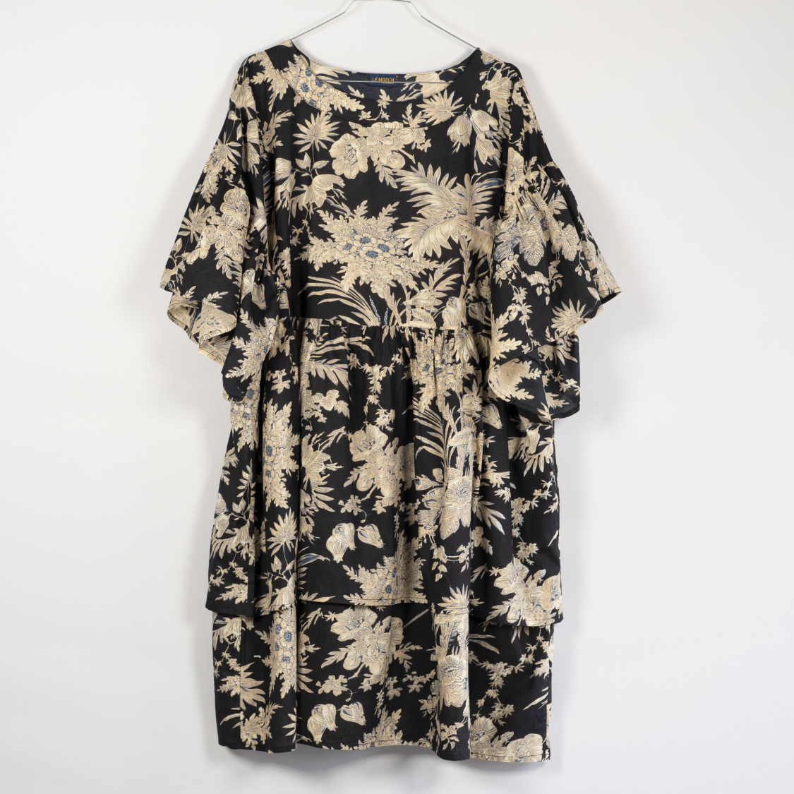 Lana kjole i Flora Print i Sort og Beige