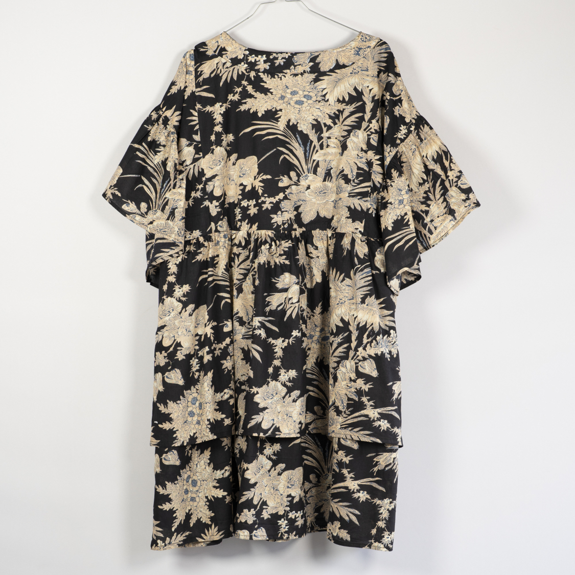 Voluminøs oversize kjole i 100% bomuld. ONESIZE - se mål længere nede. Bemærk: Stoffet kan have fine "aftryk af Indien", i form af ujævnheder i printet. Dette er ikke reklamationsberettiget.