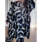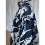 Skøn oversize kjole med lange ærmer, i bomuld. Onesize - se mål længere nede. Tina er 170 cm høj. Bemærk: Stoffet kan have fine "aftryk af Indien", i form af ujævnheder og små fejl i printet. Dette er ikke reklamationsberettiget.