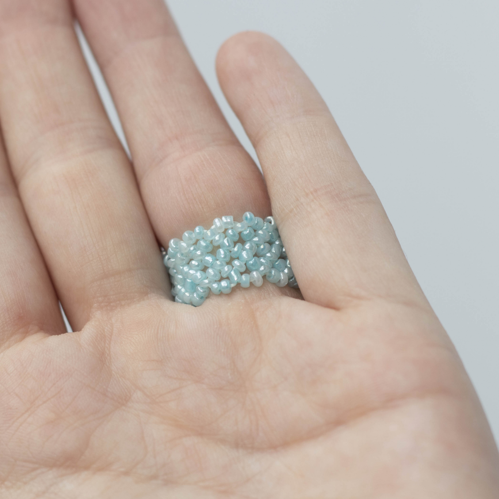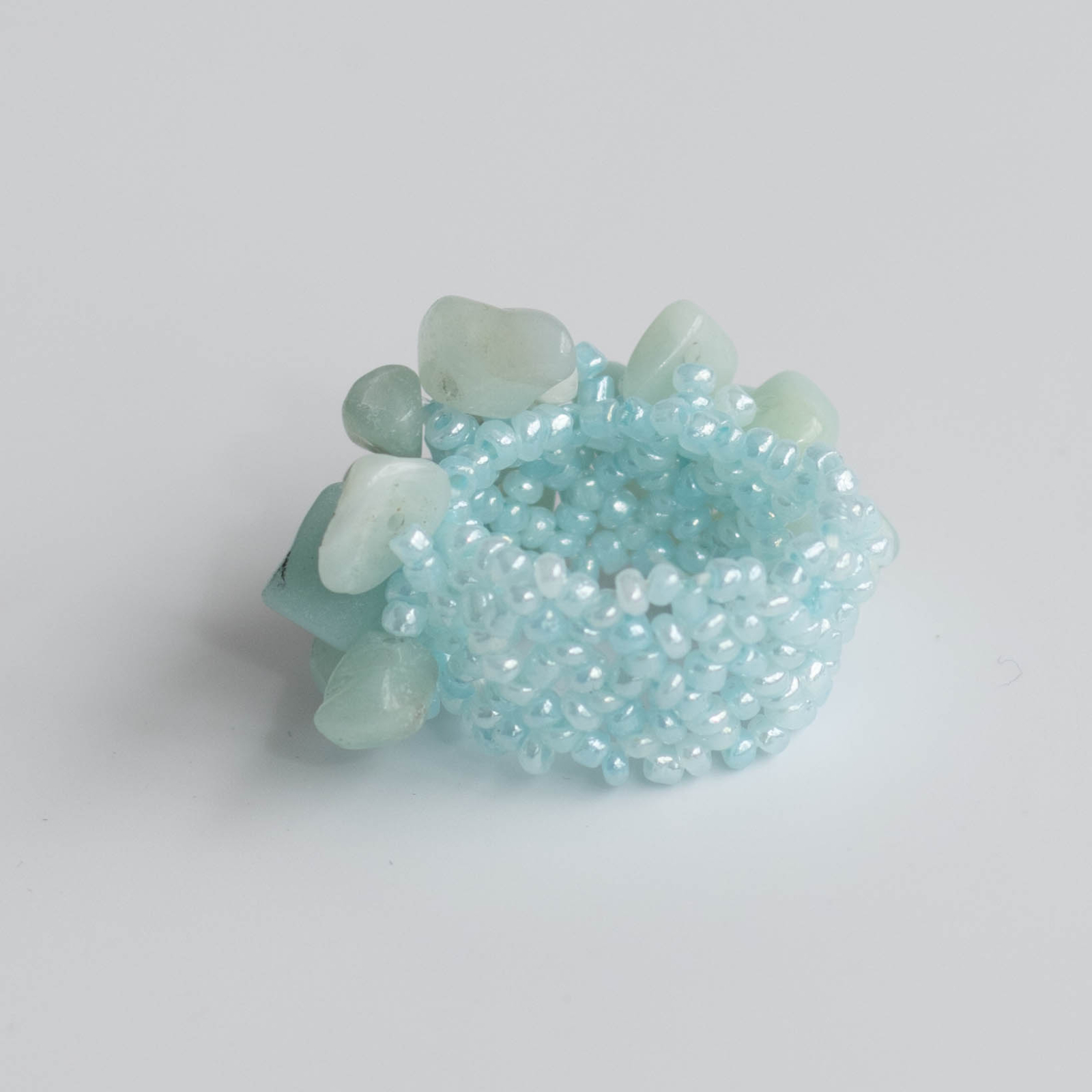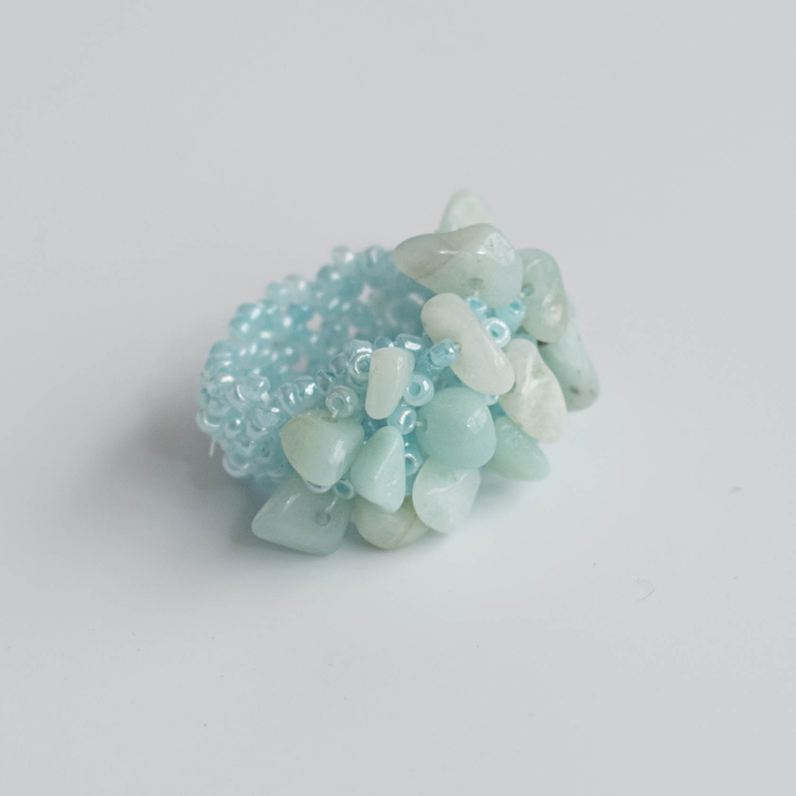 Disse yderst smukke ringe er lavet af natursten. De er med elastik bag på og er håndbroderet