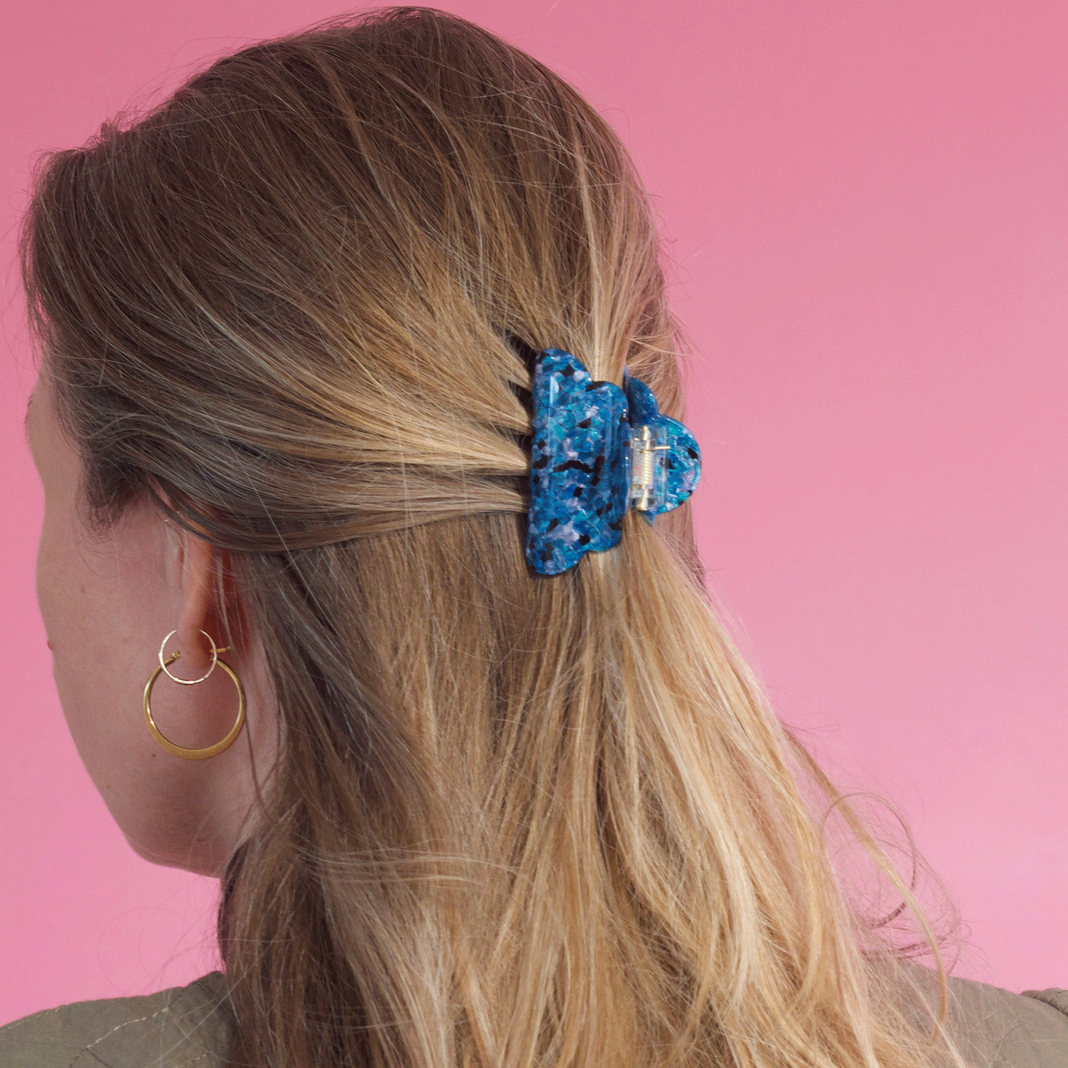 Brug Mini Heaven hårklemme i Guldfisk blå til at holde noget af håret oppe, eller vælg kun at sætte helt håret op omme i nakken. Hårklemmerne kan bruges til både festlige lejligheder men også til hverdag når du bare skal have håret væk fra hovedet.