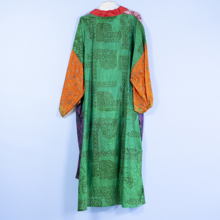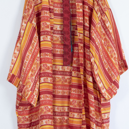 Kimonoerne er lavet af silkemix vintage sarier og du vil derfor opleve at der kan være små brugsfejl og reparationer.