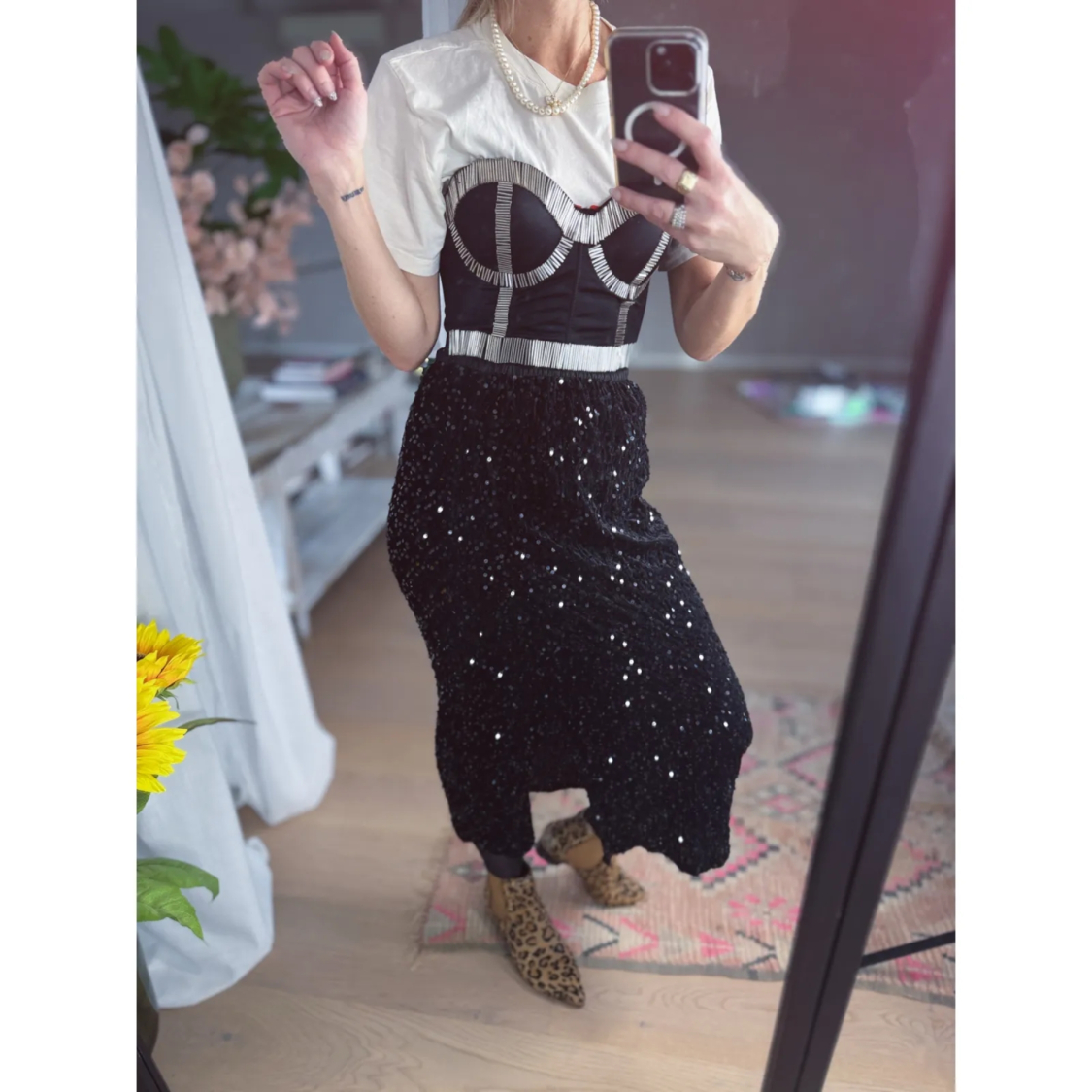 ONESIZE - Skøn og blød nederdel med pailletter. Se mål længere nede.