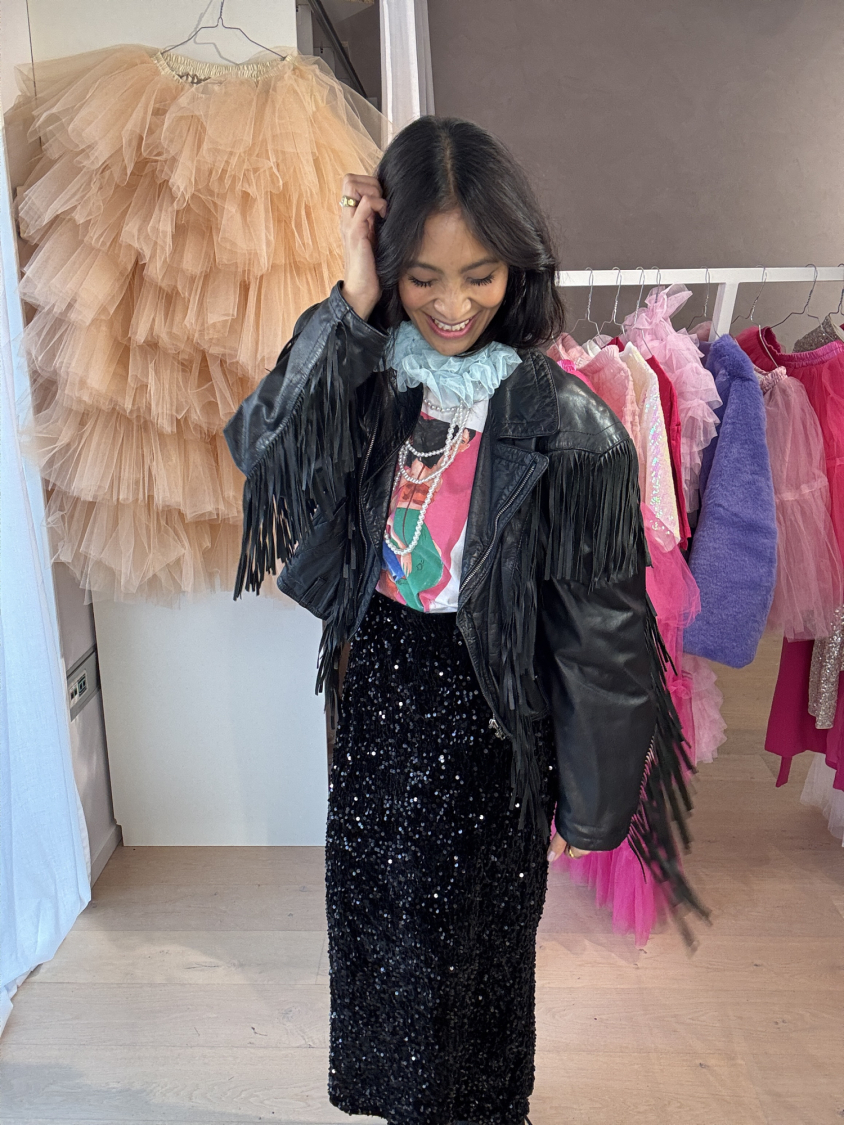 Rexine Paillet Nederdel i Sort fra LÉ MOSCH, skøn pailletnederdel til den næste fest,