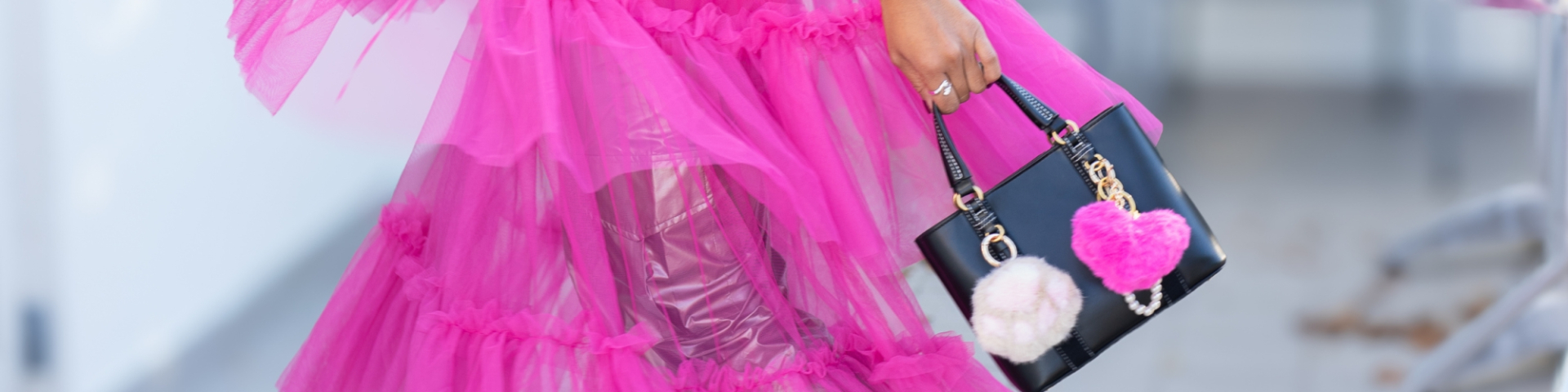 Viva Nøglering i Pink fra LÉ MOSCH, taskecharm, taskepynt, pink plysbold og hjerte med similisten,