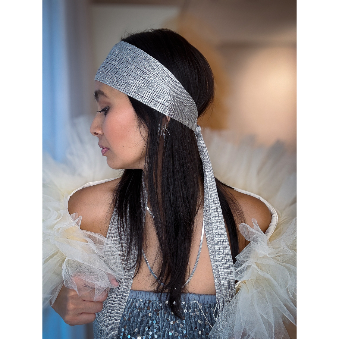 Iris Tørklæde med frynser i sølvlook