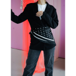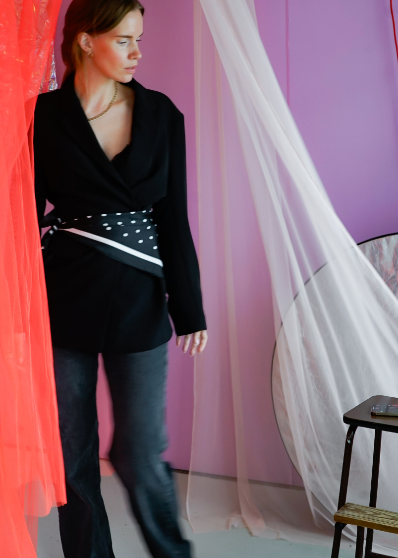 Kajsa Tørklæde med polkaprikker i sort fra LÉ MOSCH, fint og dekorativt tørklæde, super anvendeligt prikket tørklæde,