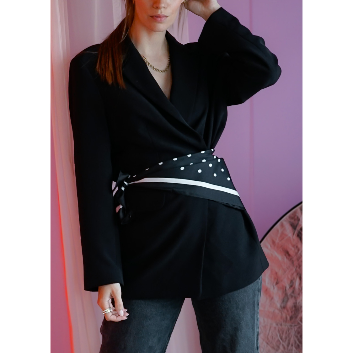 Kajsa Tørklæde med polkaprikker i sort