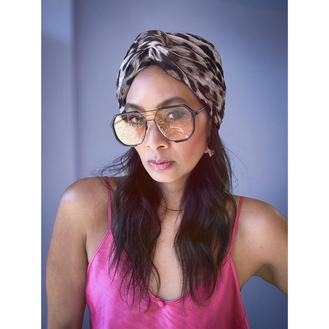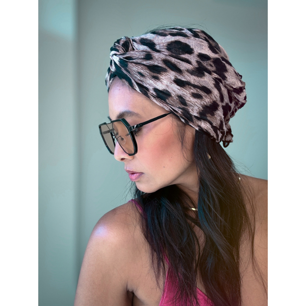 Lækkert aflangt tørklæde med leopardprint - måler ca. 75 x 170 cm.
