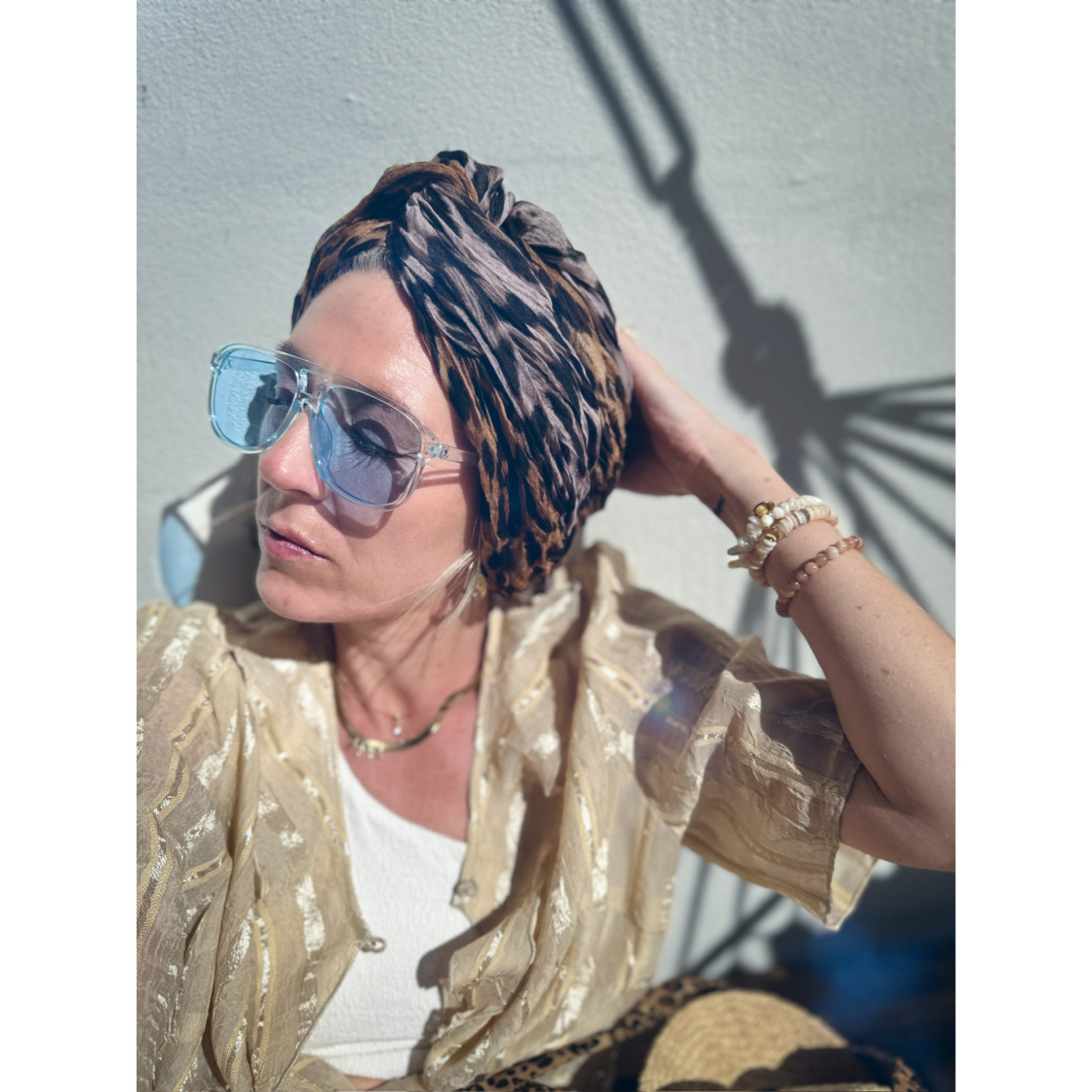 Lækkert aflangt tørklæde med leopardprint - måler ca. 75 x 170 cm.