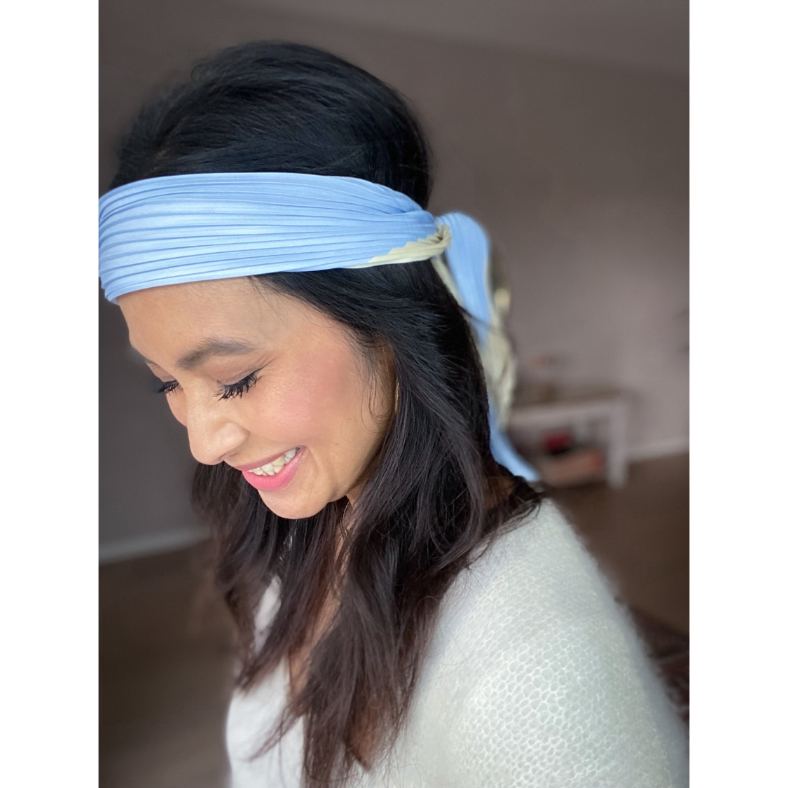 Selma plisseret tørklæde i lyseblå og creme