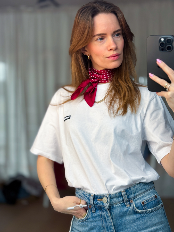 Mimi Tørklæde med små prikker i hvid fra LÉ MOSCH, fint og dekorativt tørklæde,