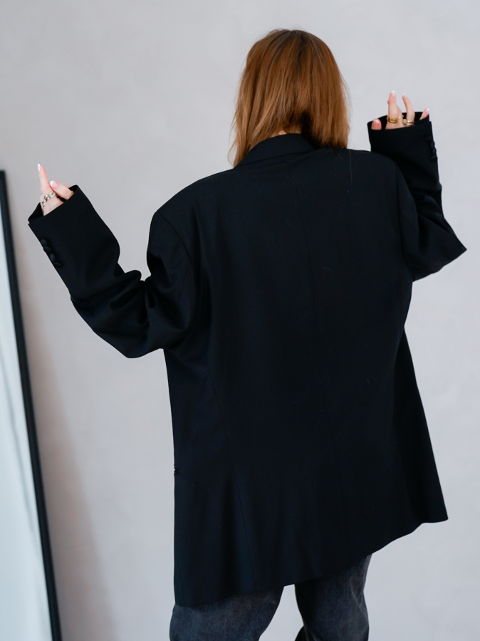 Vintage Vibes sort dobbeltradet blazer – No 166