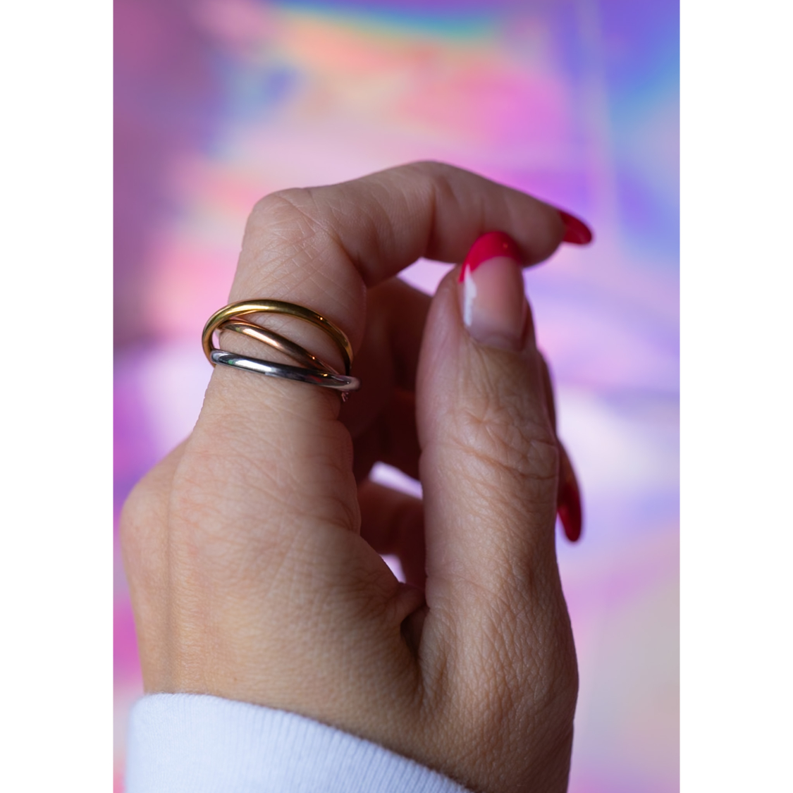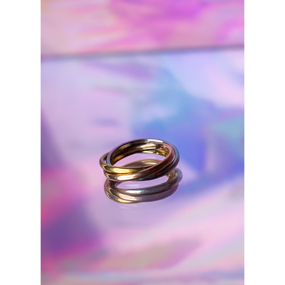 Trille Slim Tre I En Ring i Trefarvet fra LÉ MOSCH, trefarvet ring med tre skinner, beroligende ring med tre løse skinner i tre farver,