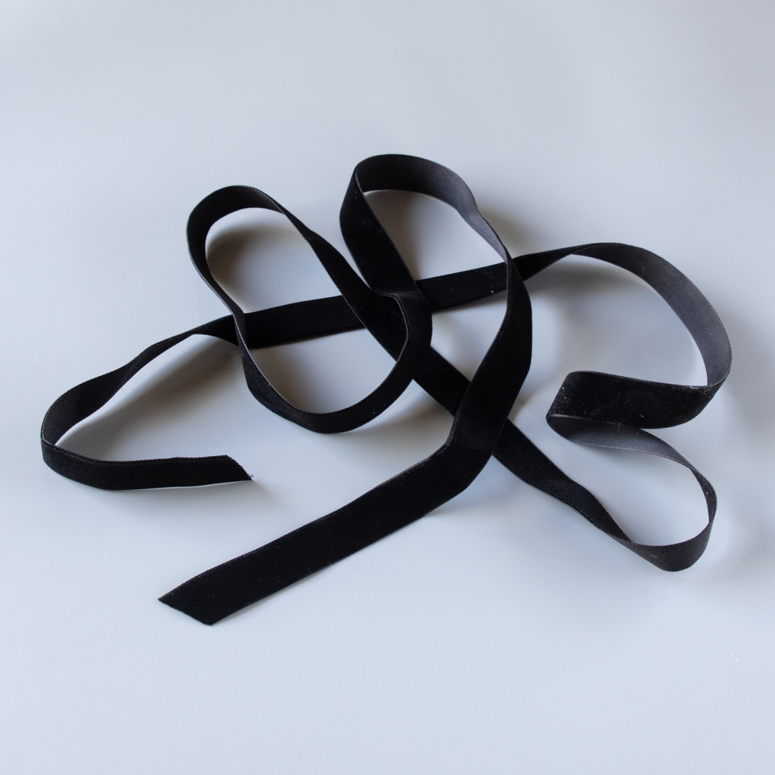 2 cm velourbånd I sort. Båndet måler 120 cm og kan både bruges med og uden en blomst i