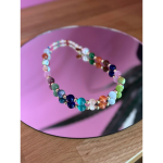 Halskæde med natursten og glasperler på en kraftig og holdbar elastiksnor.