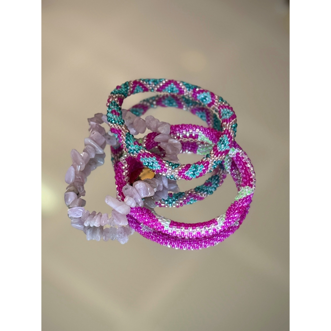 Nepal perlearmbåndssæt i pink og turkis nuancer fra le mosch