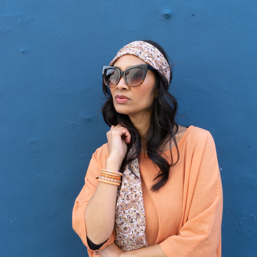 Millie armbånd i orange fra LÉ MOSCH, chunky armbånd i orange og gylden, fyldige boheme armbånd i mange farver,