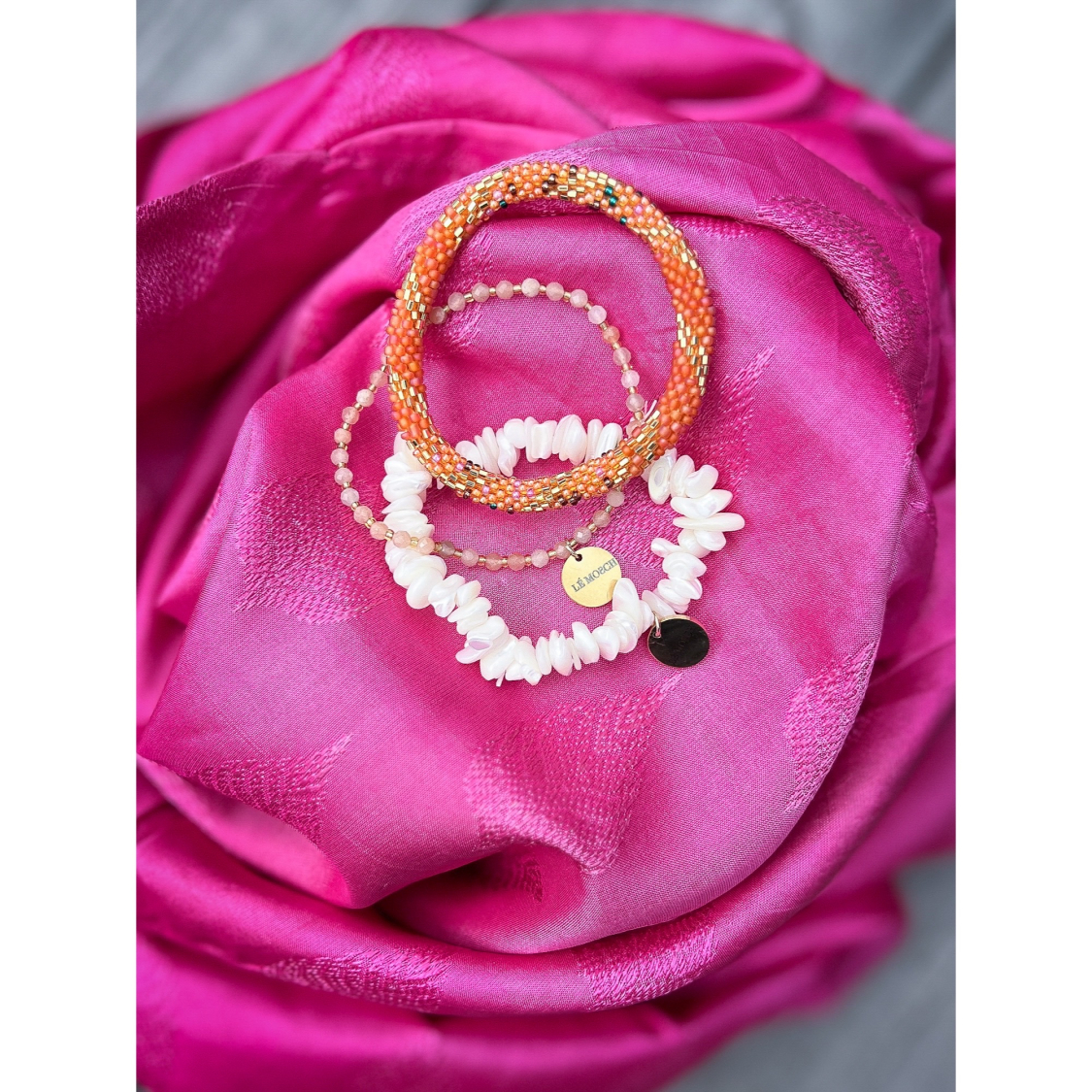 Janna armbånd med sten og perler fra LÉ MOSCH, armbånd med lyserøde sten og imiterede perler, feminint armbånd,
