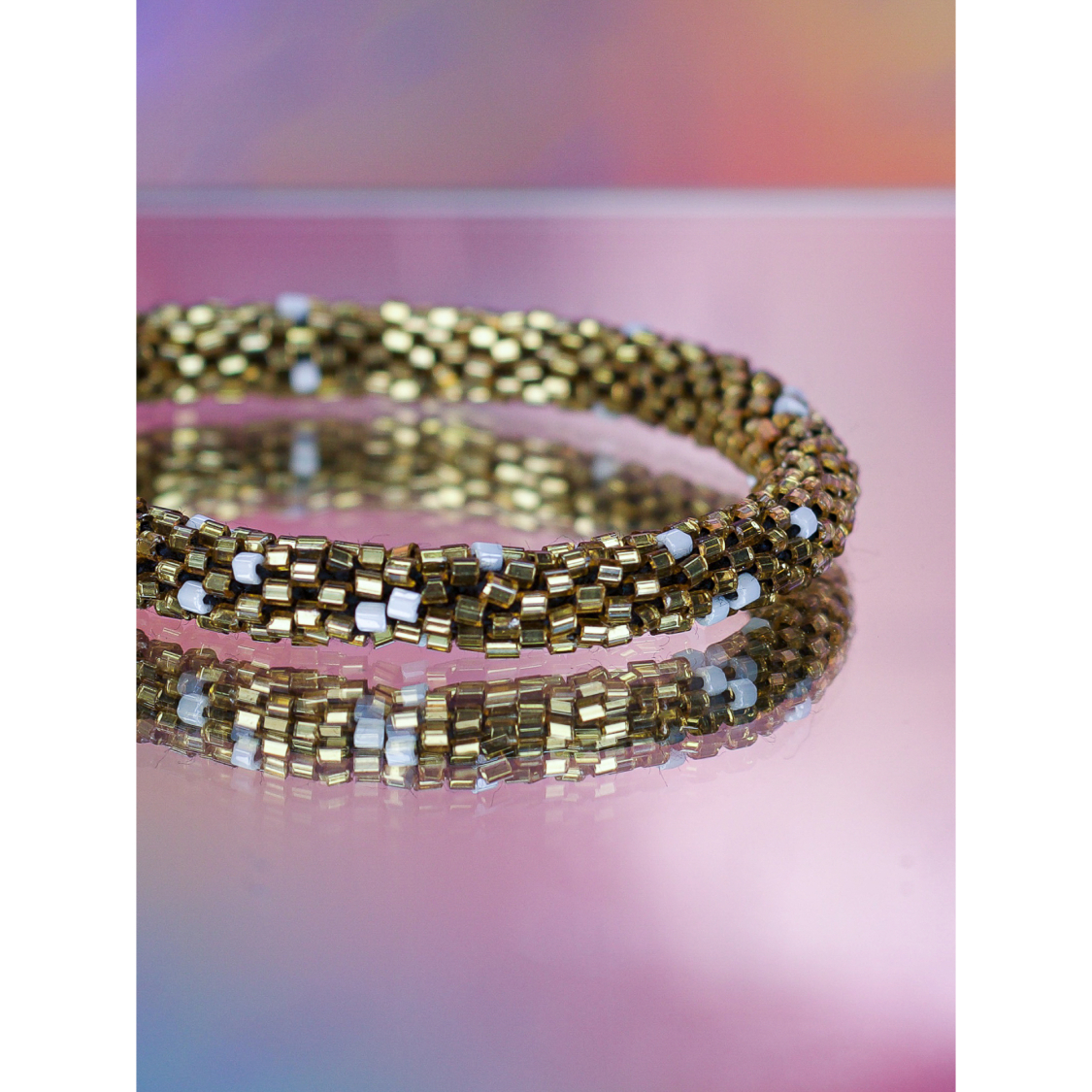 Håndbroderet Nepal Armbånd med Perler Guld fra LE MOSCH