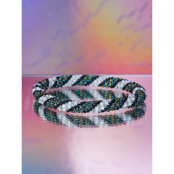 Håndbroderet Nepal Armbånd med Perler i Hvid, Sort, Turkis  og Guld fra LE MOSCH