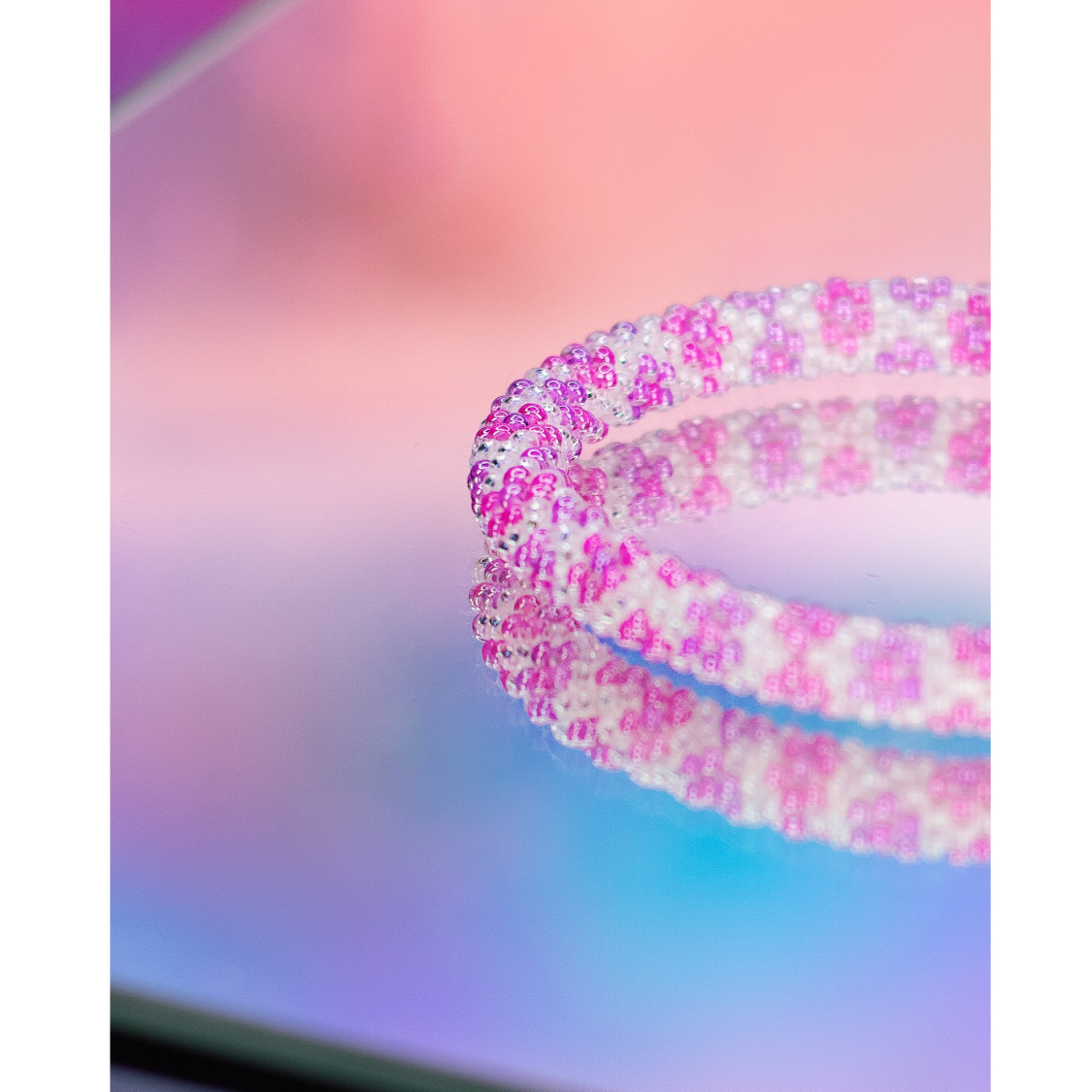 nepal roll on perle armbånd I rosa og hvid fra le mosch