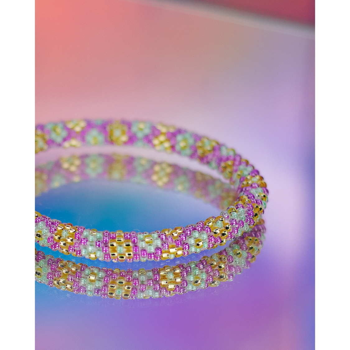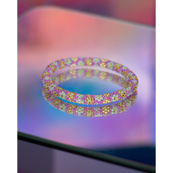 nepal roll on perle armbånd I rosa og hvid fra le mosch