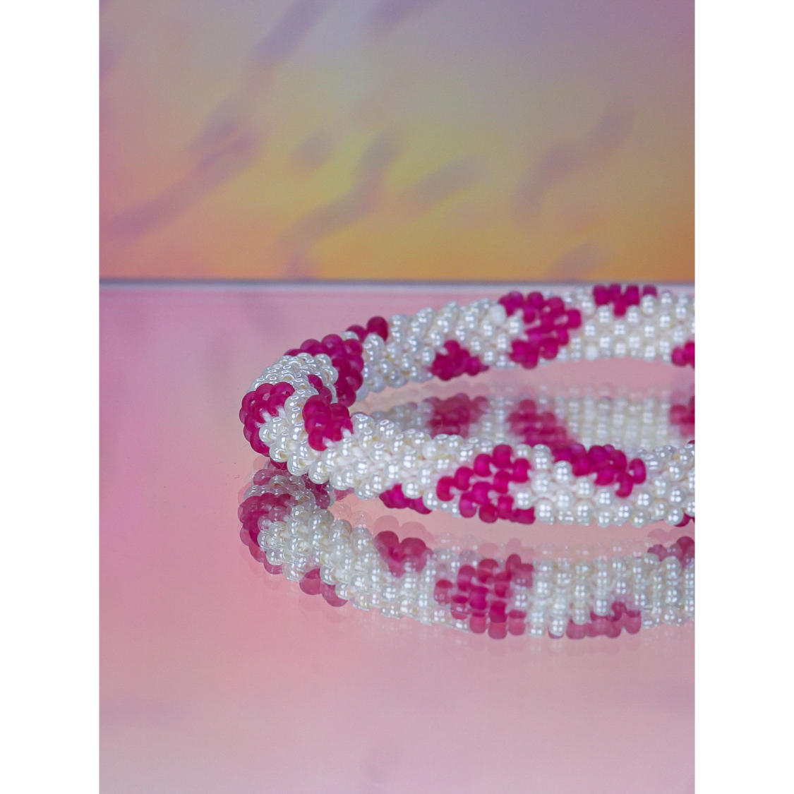 Håndbroderet Nepal Armbånd med Perler i pink, rød og gul fra LE MOSCH