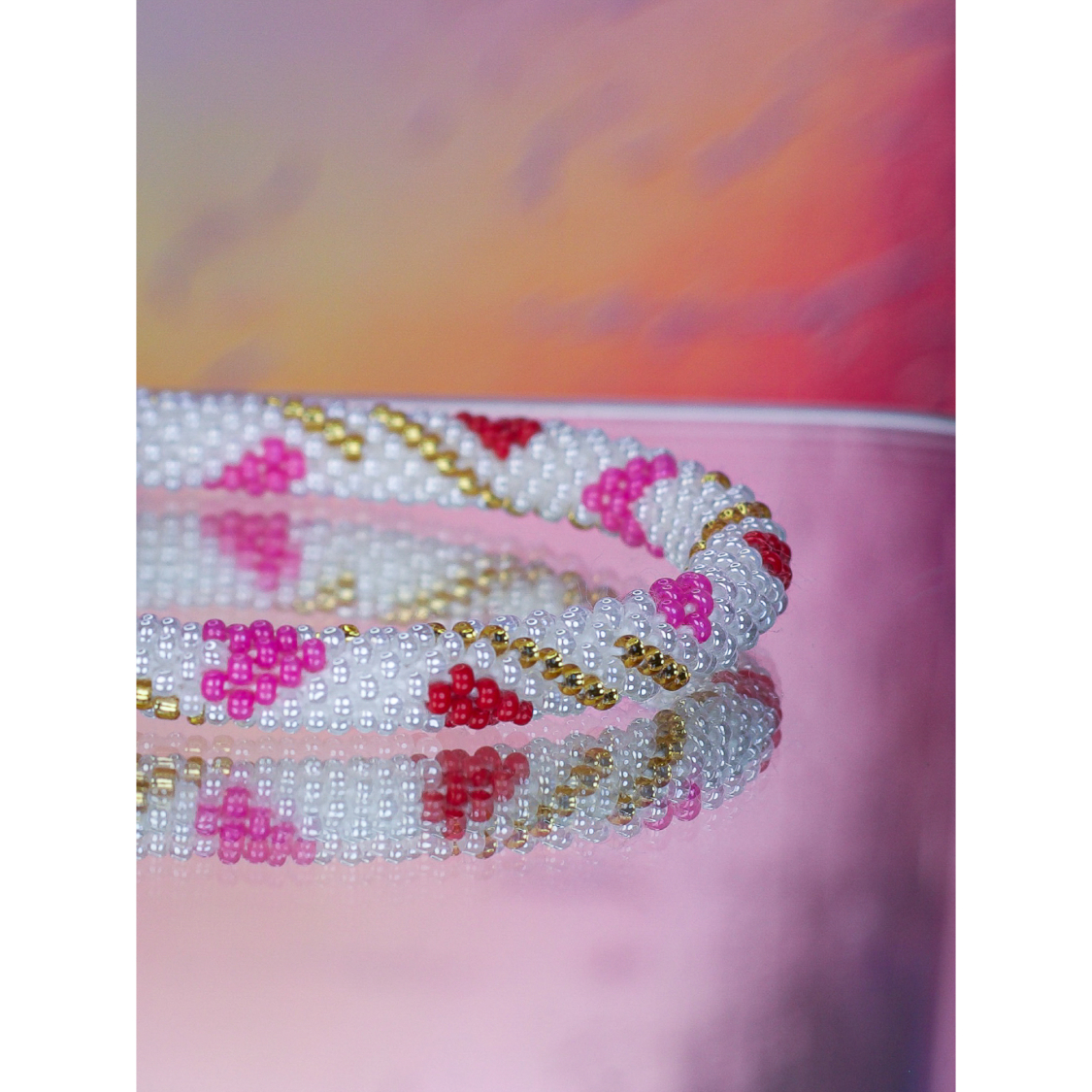 nepal armbånd med perler. håndlavede nepal armbånd med hjerter i pink og rød fra Le Mosch