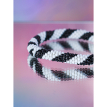 Håndbroderet Nepal Armbånd med Perler i Hvid og Sort strib fra LE MOSCH