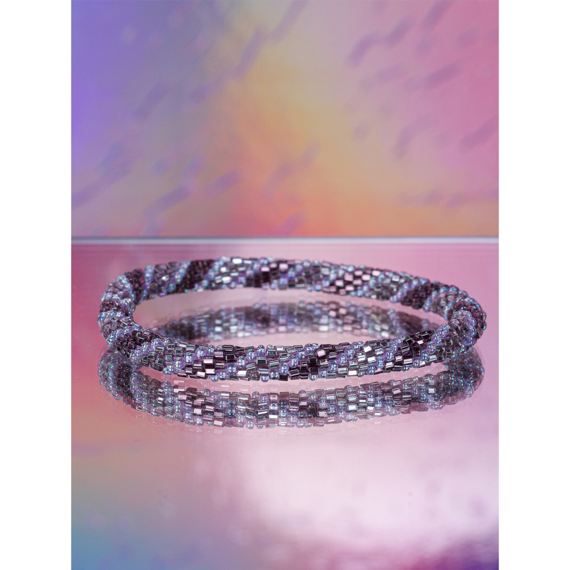 Håndbroderet Nepal Armbånd med Perler i lilla nuancer fra LE MOSCH