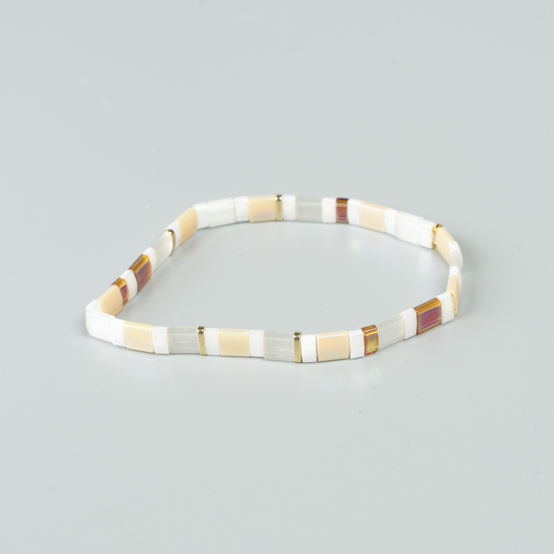 Hvid og guld farvet Xia armbånd fra  LÉ MOSCH – med natursten, vist på hånd.