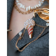 Bi Broche med grønne sten og kæder fra LÉ MOSCH, dobbelt broche med kæder og en lille bi, gylden broche med grønne sten,