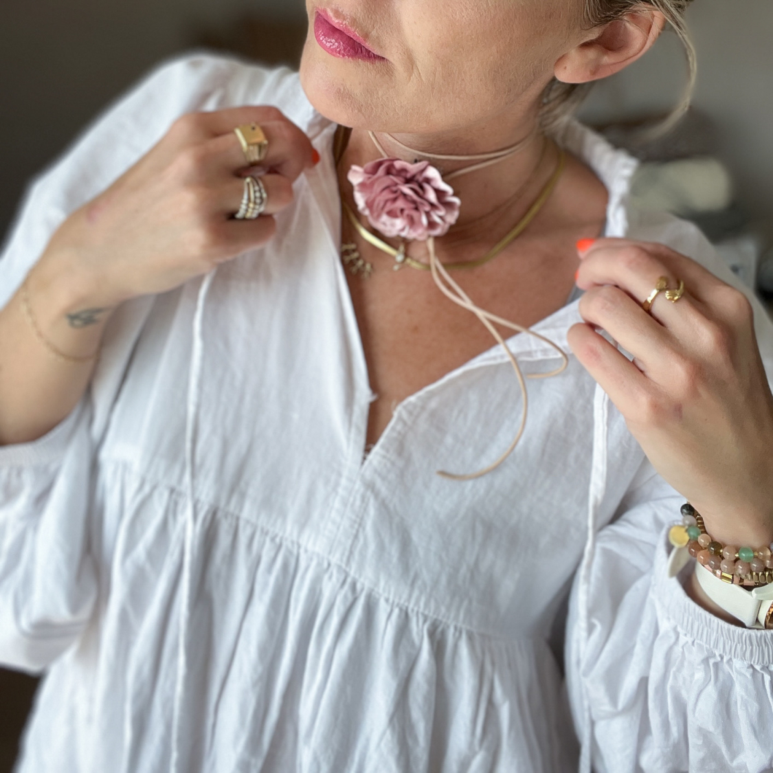 Satin Blomst I Nougat