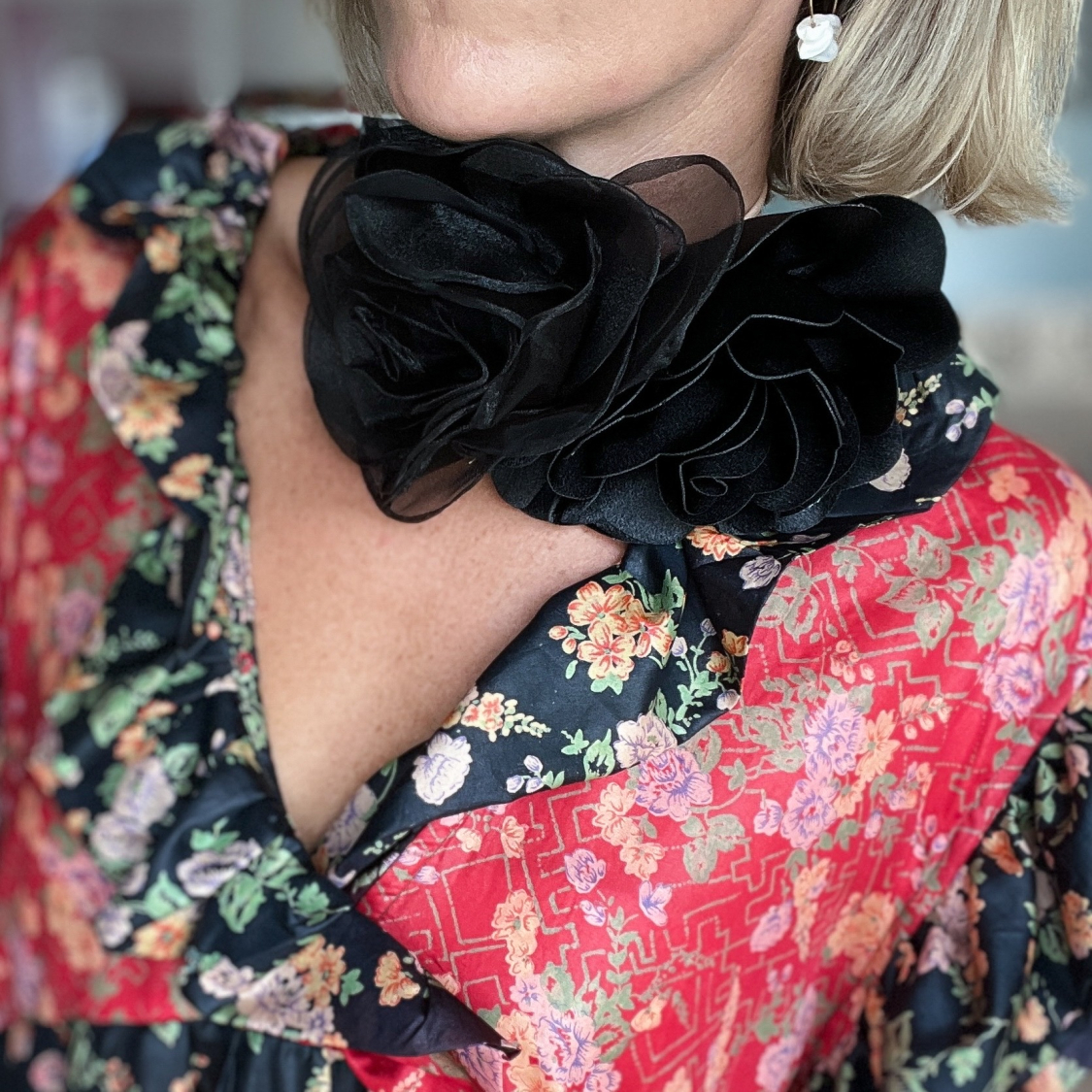 Forsiden / Smykker / Stor Satin Blomst I Sort 16 cm.