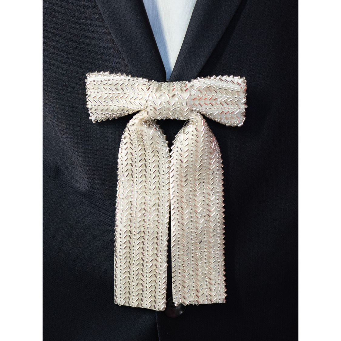 Stor Sløjfe Broche med sølvlook perler fra LÉ MOSCH, anderledes og iøjnefaldende broche, fyldig statement broche,