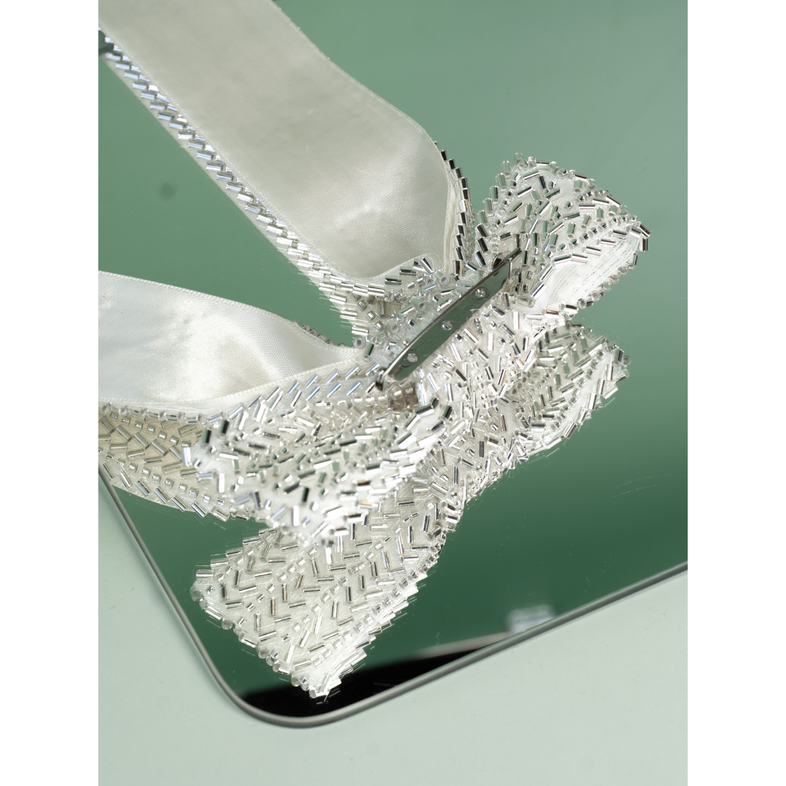 Stor Sløjfe Broche med sølvlook perler