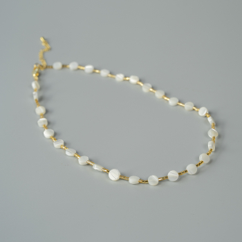 Super fin og enkel halskæde, med perlemor og gyldne glasperler.