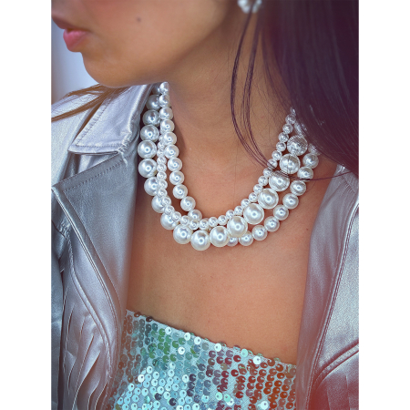 Perlerne er lavet af plastik og sammensat af følgende halskæder