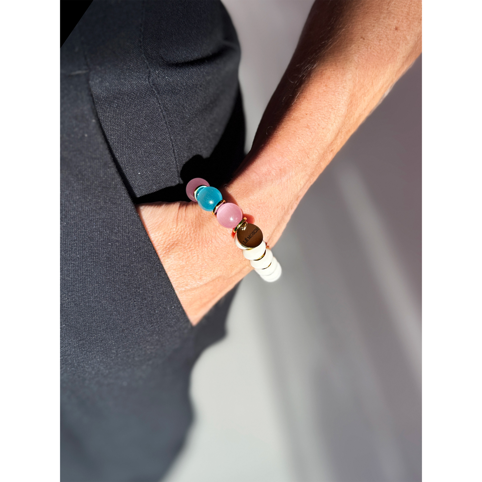 Armbåndet er håndlavet af varer vi allerede har på hylderne hos LÉ MOSCH - vi tror på, at i stedet for at prisreducere, så kan vi sagtens nytænke og producere nye smukke produkter. Således kan dette armbånd nu blive dit. Derfor har vi i øvrigt heller ikke særlig mange stk. af hver, så du skal være hurtig.