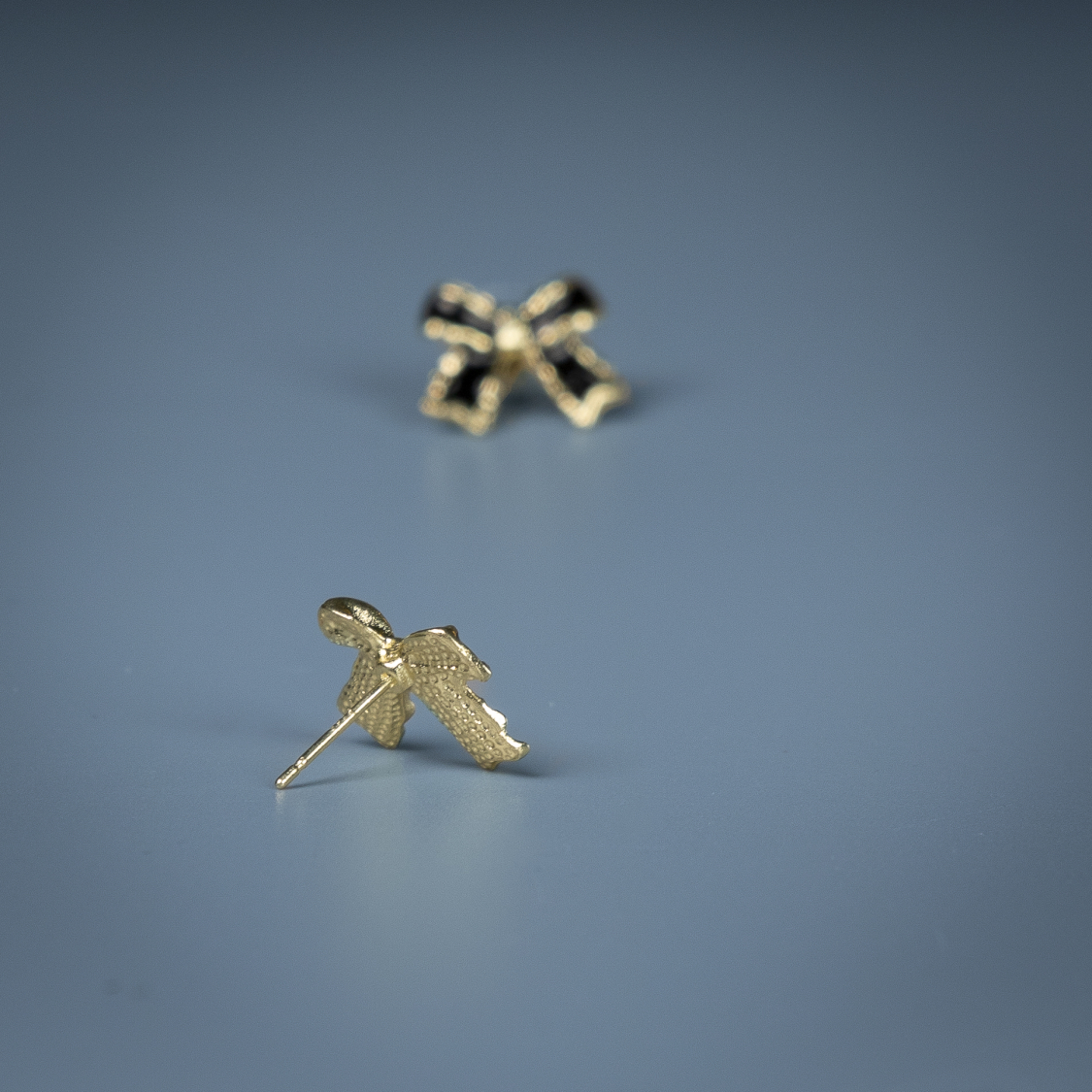 Forsiden / Smykker / ØRERINGE / Filine sløjfe ørestikker i Sort Forgyldning