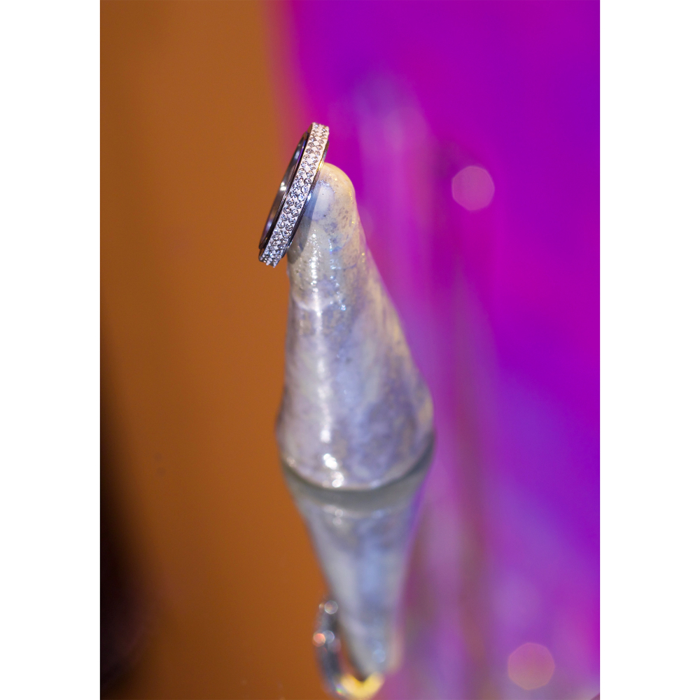 Ringen har et helt klassisk look med to rækker af sten, og den er bare så pæn, enkel og stilfuld.
