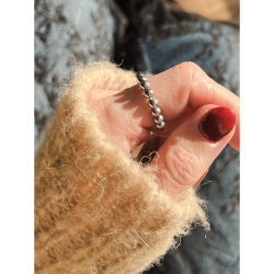 Ariel ring med sølvfarvede kugler og hvide perler fra  LÉ MOSCH, fin ring med metalkugler, smuk og enkel ring på elastiksnor,
