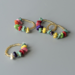 Ring med natursten og glasperler, på elastik.