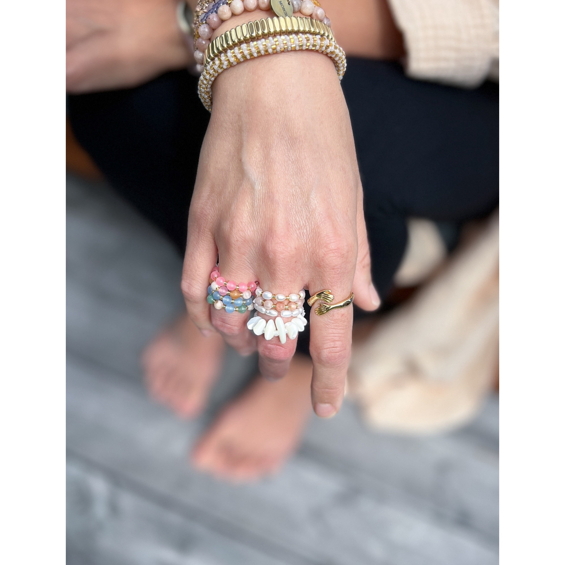 Ariel ring - Solsten, Grøn Aventurin, Blå Jaspis og Glasperler fra le mosch
