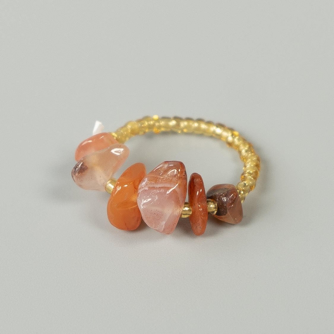 Ring med natursten og glasperler, på elastik.