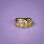 Cool statement ring med små fine hvide sten. Ringens belægning er vandfast og holder derfor til håndvask.