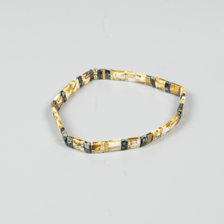 Karneol Veins har flotte varme brune nuancer, der spænder fra glødende ravtoner til de nougat- og flødefarvede toner. Armbåndet er fint og beroligende at se på.