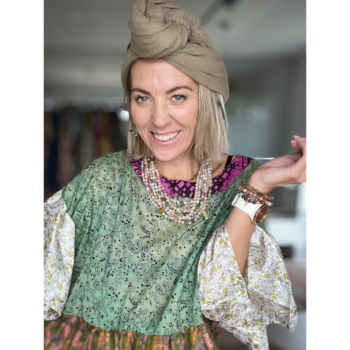 lys beige sully tørklæde fra le mosch. Tørklæde til at have om hilsen eller i håret.